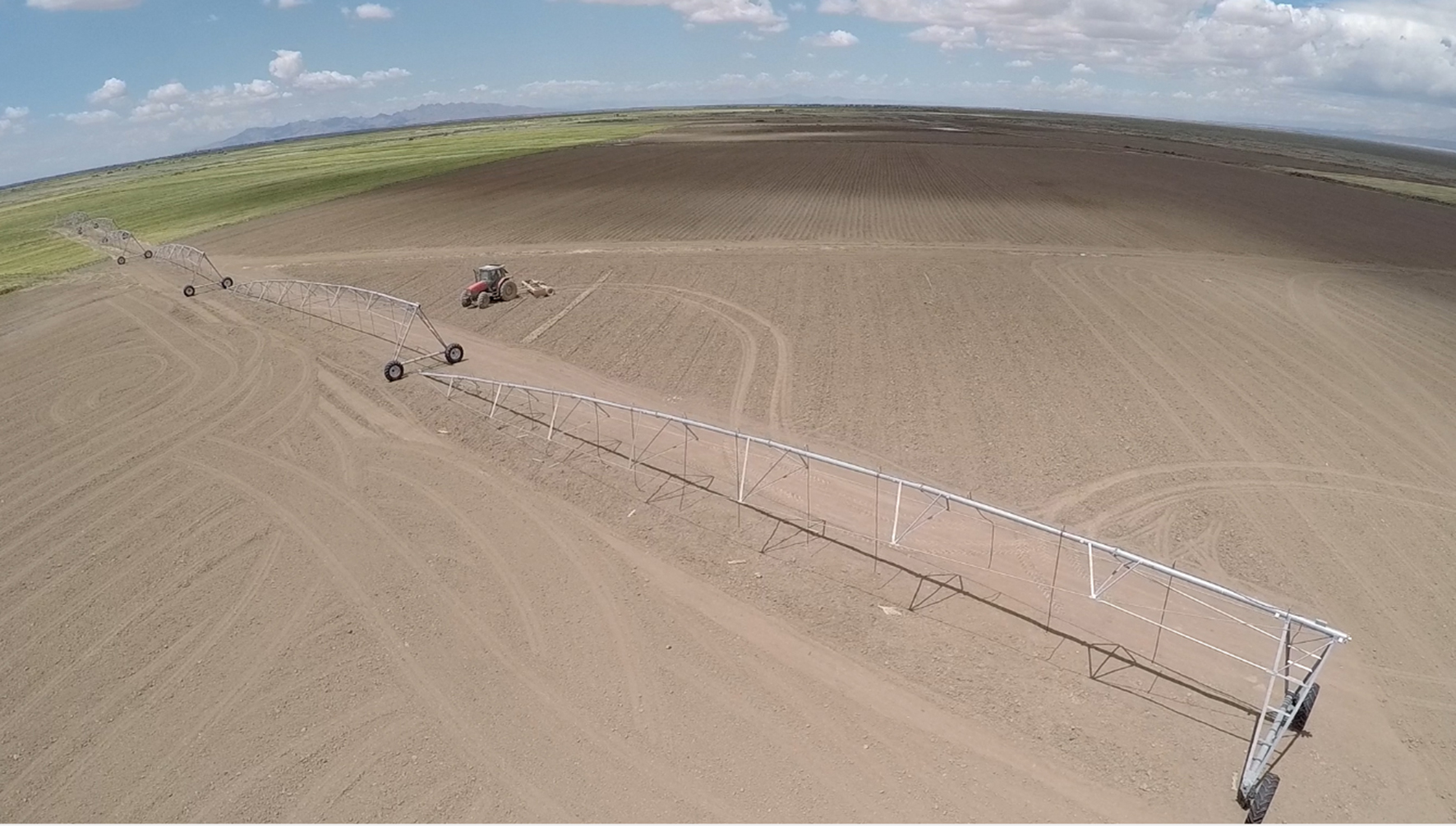 نمایی از آبیاری بارانی سخت شرکت کشت گستر در حال کار